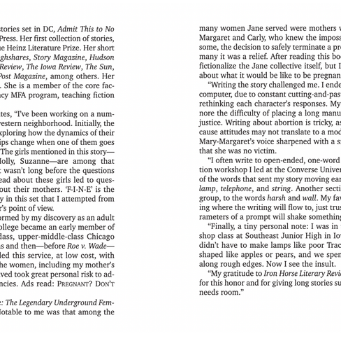 Another writer, Leslie Pietrzyk, whose story “F-I-N-E” won our Long Story Prize also has a collection of linked stories that is in progress. In an interview published by “The Creative Independent,” she talks about her writing process and the research involved in the process of putting or writing her short stories. She also discusses the inspiration behind her long story and the inspiration it sparked in working on more stories and exploring as a writer.
